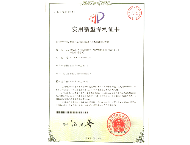 实用新型专利证书-组合式低耗能多级超音速水煤浆雾化喷嘴